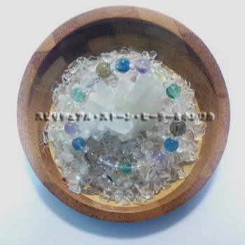 このさざれ石水晶の上に、パワースポット・ブレスレットを置いておくことで、お部屋の浄化効果を感じていただけるでしょう。
